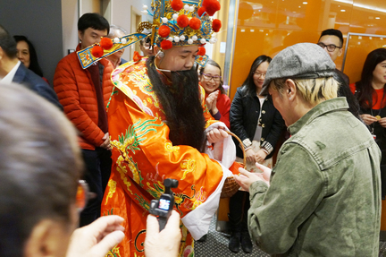 | hidden | ![]() 李大哥接過金獅吐出來的「青」,事事順境,人旺生意更加旺! | hidden | ![]() 踏正吉時,金獅於加拿大中文電台大堂採靑,雄師翻騰飛躍,寓意業績鯉躍,生意飈升。 | hidden | ![]() 新聞總監李潔芝預備紅封包迎接金獅,祈求新聞部記者出入平安。 |