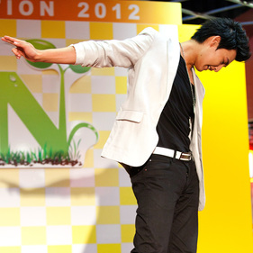 hidden | ![]() ![]() facebook人氣王之一見鍾情大獎得主#3 Aaron 陶迪衡,人氣爆燈,有粉絲團隊落力打氣,Aaron 唱得更起勁 | hidden | ![]() ![]() 身高184cm的#4 Evan 馬振桓,擁有迷人的笑渦,唱完韓文歌後擺出這個「殺食」的pose,台下女粉絲們即大叫:「好帥啊!」 |