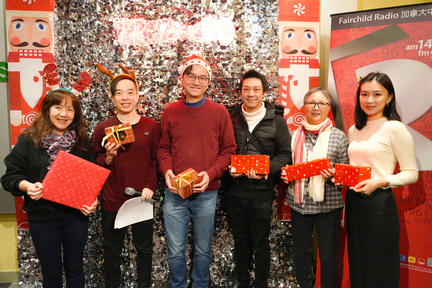 Last Friday, Fairchild Radio held its annual staff Christmas party at the station. Colleagues from the Administration Department carefully prepared for the event in advance, transforming the meeting room into a mini stage, while the reception area was turned into a festive party hall. On the day, DJs and staff members dressed up for the occasion, and with cheerful Christmas music playing throughout the venue, the atmosphere was filled with strong holiday spirit and joy.
